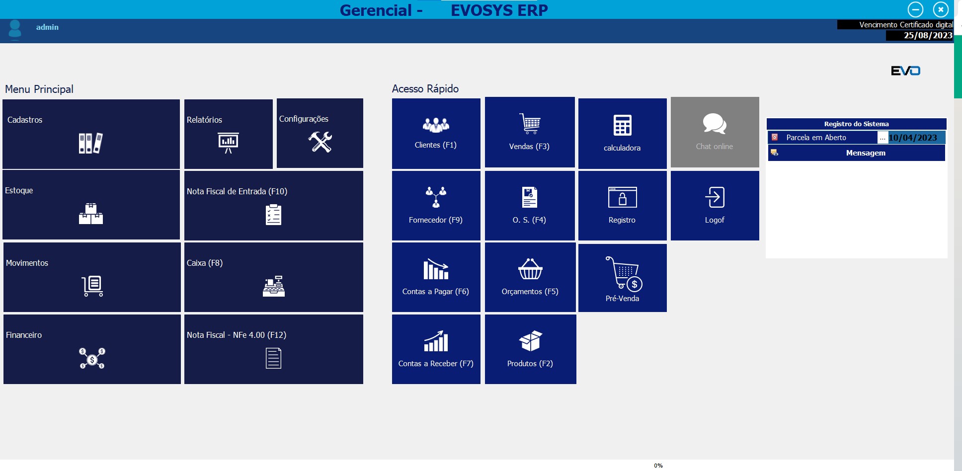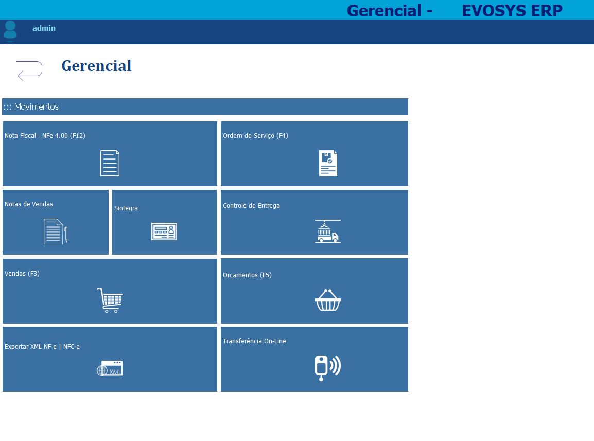 Menus do Evosys